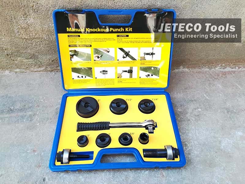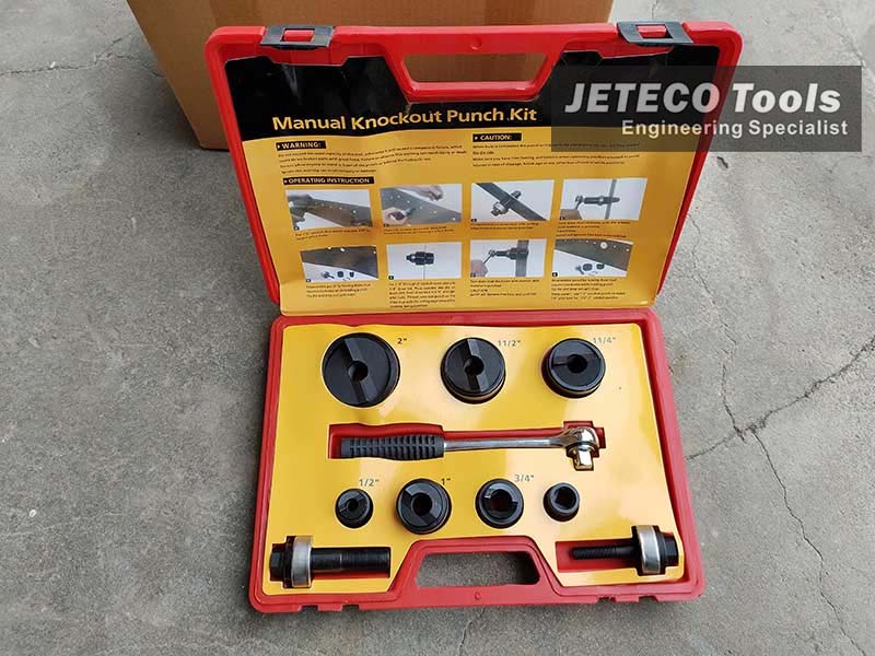 CC-60 manual knockout hole punch kit, with 6 dies 1/2'' to 2'', complete tool set within plastic carrying box.