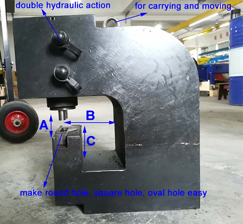 Suitable for punching holes in mild steel plate max up to 18mm thickness, angle iron 8-15#, channel steel 10-25#, H steel 8-15#.