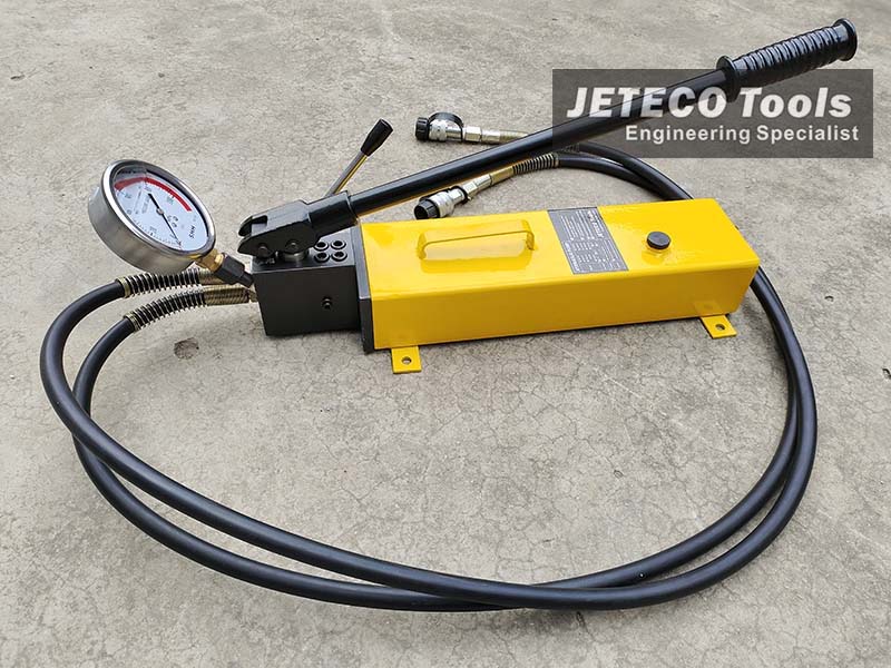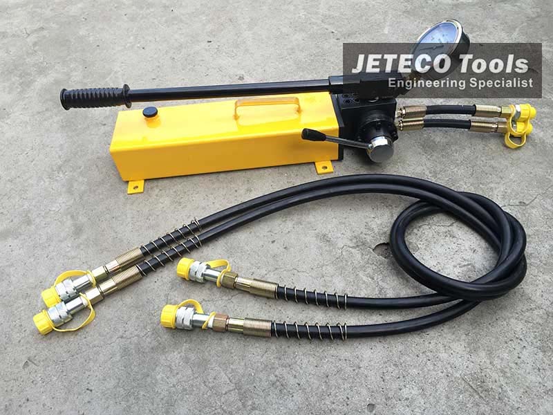 JCP-800B double action hydraulic hand pump with two hose, square oil tank, 2700cc.