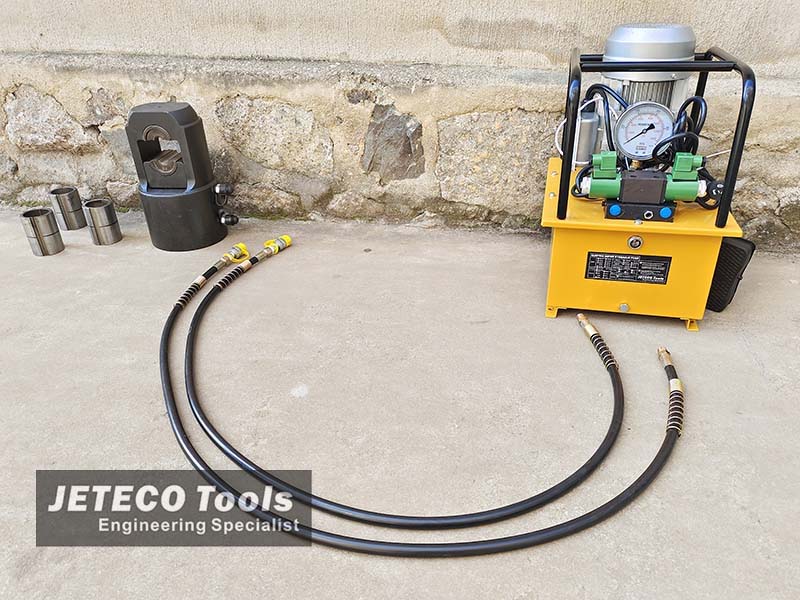 KYJ-0318 electric hydraulic wire rope crimping machine, is a heavy duty wire rope crimper tool driven by a double acting electric motor hydraulic pump.