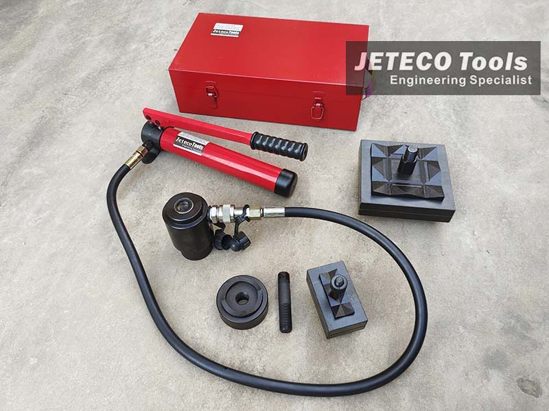 This is a powerful hole punch tool kit, suitable hole punching in mild steel sheet, stainless plate, as well as plastic.