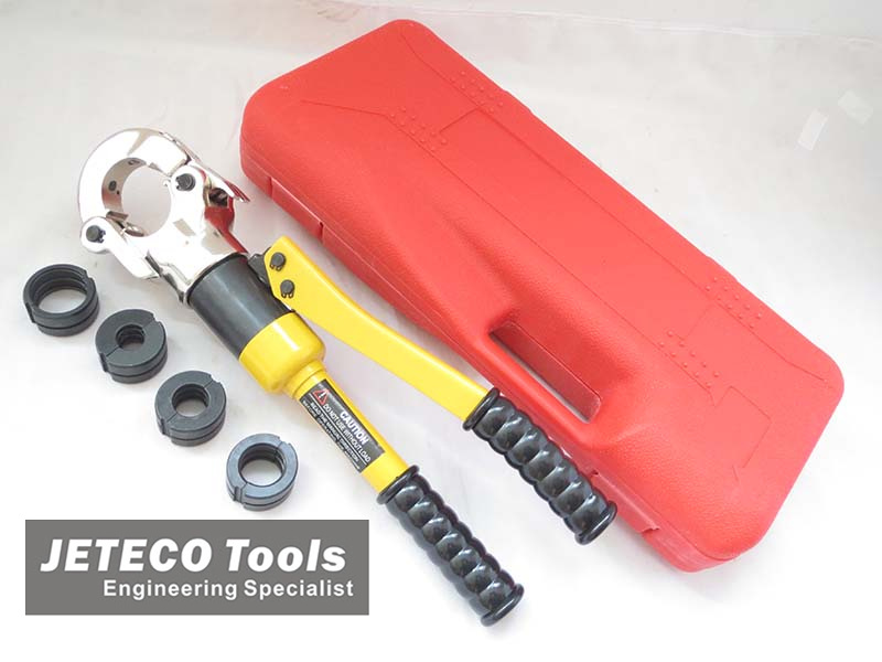 This hydraulic pipe press tool with standard hydraulic system, slower than model YQ-1632 tool.